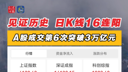 見證歷史 日K線16連陽 A股成交第6次突破3萬億元